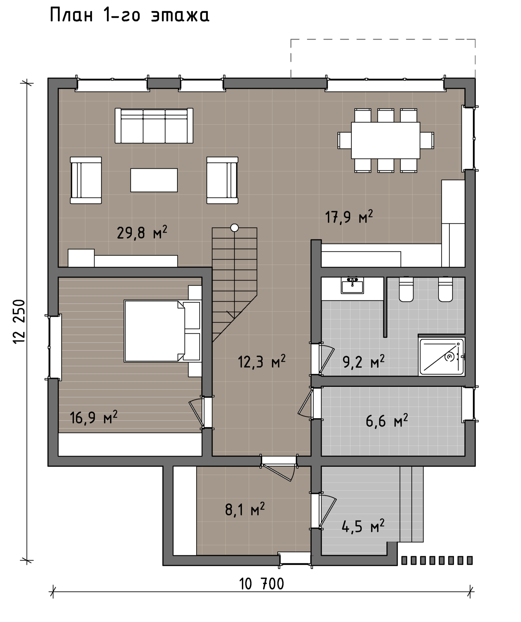 Этот проект подойдёт тем, кто ценит современный дизайн без излишней декоративности. Дом выглядит архитектурно выразительным, но при этом остаётся практичным для повседневной жизни. Чёткие линии, натуральные материалы и продуманная композиция делают его актуальным решением для загородного участка, где важны и эстетика, и комфорт.