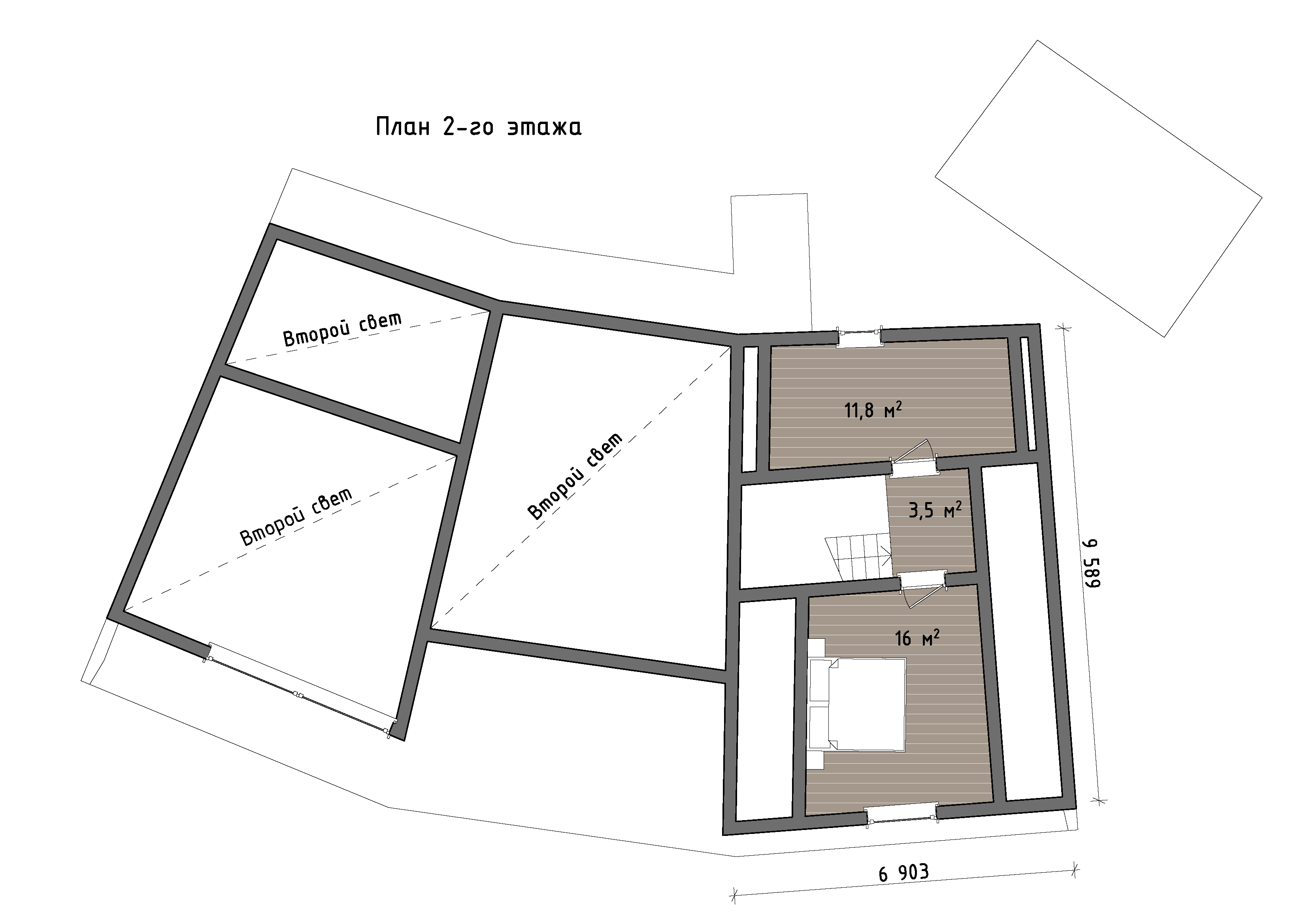 Дополнительно на участке предусмотрен отдельный небольшой объем, который можно использовать как гостевую студию, кабинет, мастерскую или вспомогательное помещение для отдыха и хобби. Он поддерживает общую архитектурную композицию и расширяет функциональные возможности усадьбы.